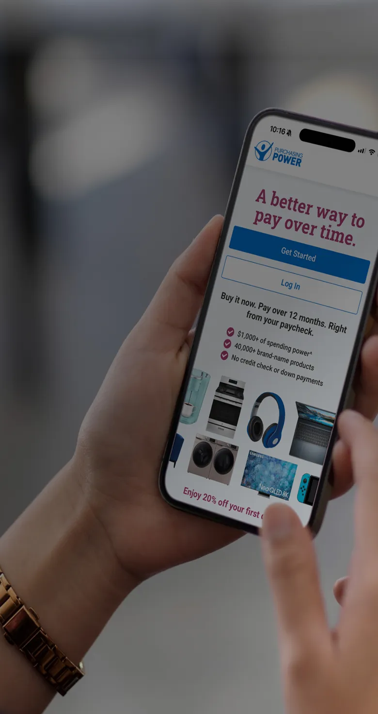Since 2001, Purchasing Power has helped millions of employees get the essentials they need without taking on additional debt, high-interest credit, hidden fees, or complicated payment terms.